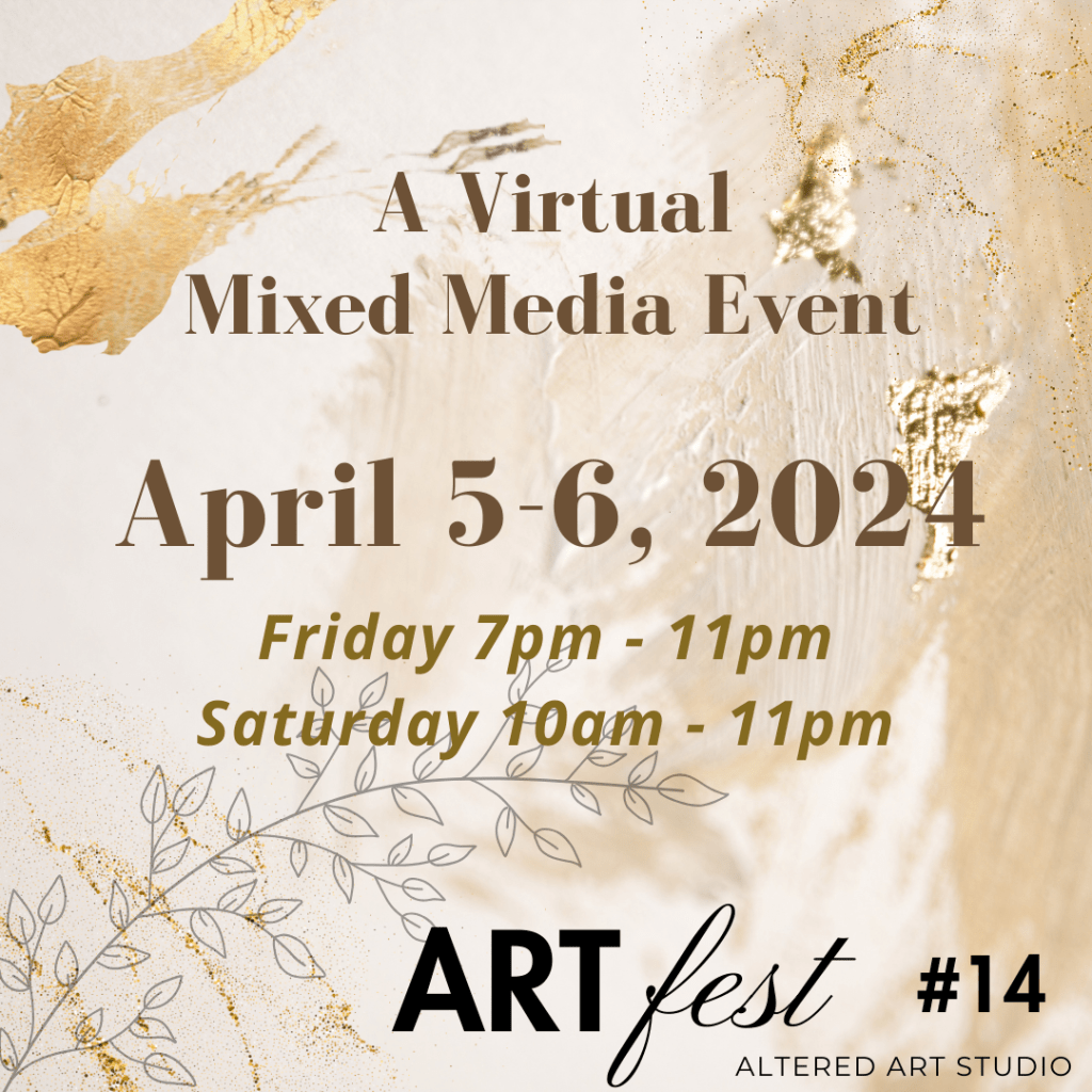Another fun mixed media event is scheduled for the first weekend in April, right after Easter. It is similar to a scrapbook crop, but with a mixed media twist. It’s an easy way for beginners to see what mixed media is all about, and all skill levels are welcome. We have such fun and it’s a wonderful caring and sharing community. Registration for the event is on my shopify account. You have the option of signing up and getting a kit, or signing up for the class with NO kit and you can use items from your own stash. A kit is sent out with all the bits and pieces to complete 5 projects during the course of the event.