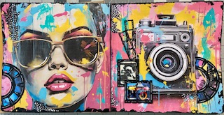 Wow! What a colorful journal page for this month! The pretty papers have some color added and marks as well, and the edges have been framed with scrapes of black paint. Die cuts are from the new Vault collection from Tim Holtz. I love the viewmaster reel and the film strips. So cool! Email me at alteredartstudio222@gmail.com if you are interested in a kit. The virtual class is on June 20th and the in person class on June 27th. All my monthly journal pages are on the third Thursday of the month. Thanks for looking!