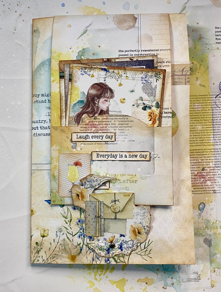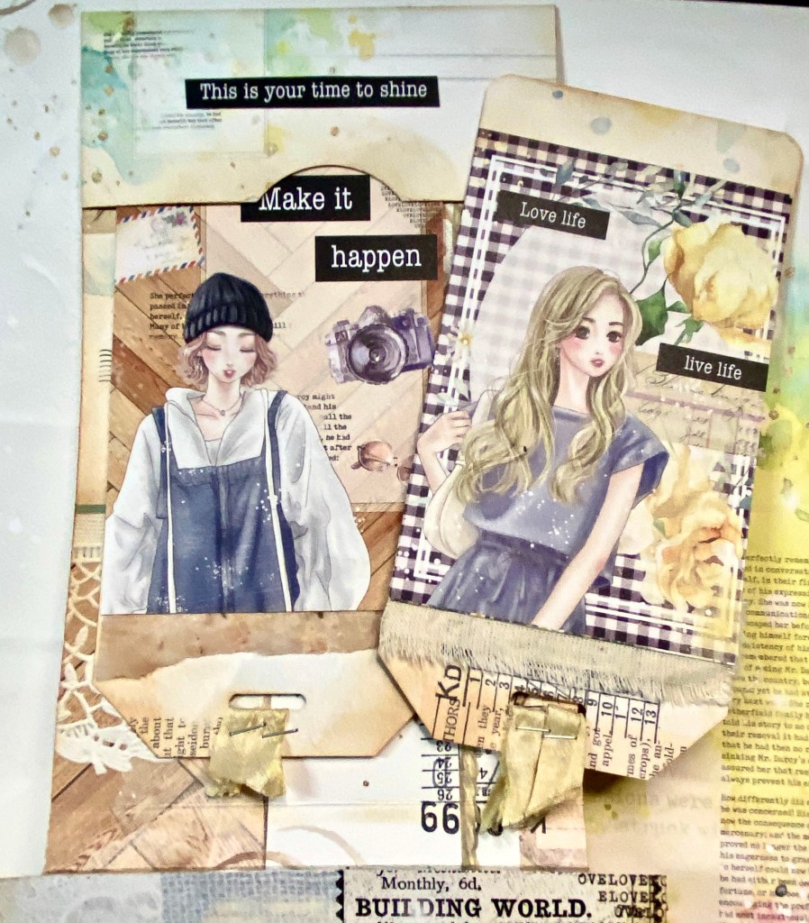 This month’s junque journal class is Thursday the 13th at Paper Art Creations in Leduc, AB. I have regular journal classes the 2nd Thursday of each month in person at the store. I prepare 13 kits with product to complete the project, but I always encourage those who come to class to do their own thing and add bits and bobs from their own stash. It makes it unique and original. I used the beautiful paper line Good Life designed by Asuka Designs. She designs collections for Memory Place (Tokyo) and they have a U.S. presence as well. Her designs are awesome and I love working with them.